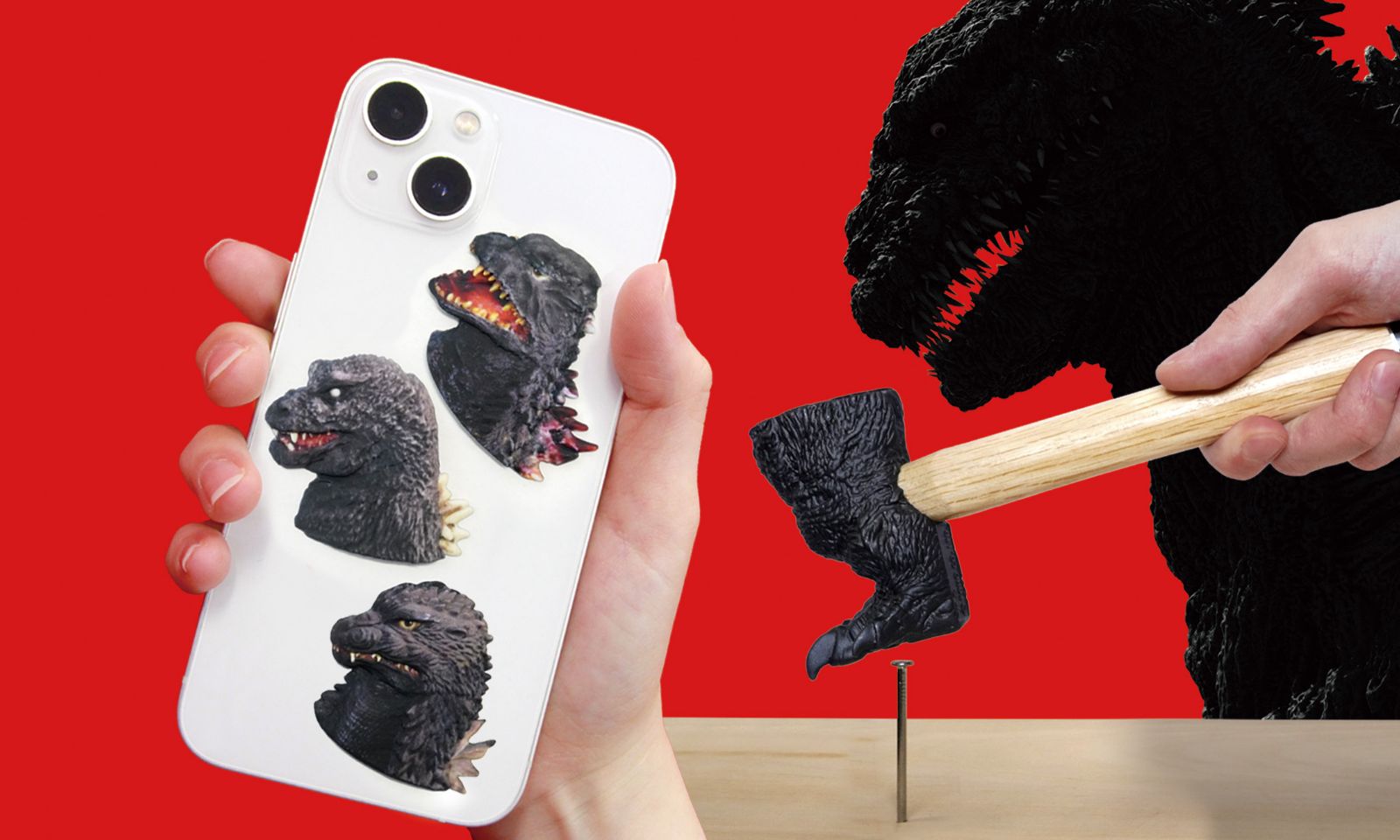 実際に撮影で使われたゴジラスーツを3Dスキャンして製作したハンマーです。ゴジラの足の裏までリアルに再現しています。国内外で反響があり、めざましテレビでも取り上げられました。発売2週間でおよそ1,500本の注文が舞い込んだ人気商品です。