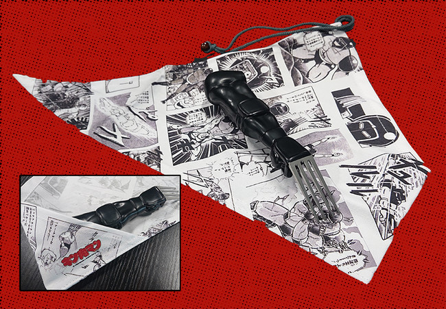ベアークローを装着したウォーズマンの左腕が、筋肉もそのまま丸ごとフォークとなって商品化!クルクル回しながらパスタを食べることで、見事に恐怖の必殺技「スクリュードライバー」を再現することが出来ます。